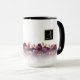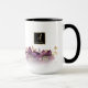 Blooming flowers in deep red, purple and golden details and leaves are appearing from a soft gradient on the lover part all around this mug. A black printed square with a golden frame, your monogram letter and full name customisable for you on both sides. A feminine and elegant mug, a nice add to you office space. Sip in style.