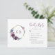 This wedding design features the bride and groom's monogram initials in purple framed by a boho wreath of purple watercolor flowers on a gold hoop on the left-hand side. Customise the right-hand text, with room for an online RSVP option with website URL.