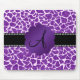 Monogram purple glitter giraffe print mouse pad