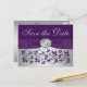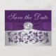 This monogrammed royal purple and silver grey floral save the date postcard has a PRINTED ribbon and a silver faux engraved PRINTED medallion on it that matches the wedding invitation shown below. If you require any additional matching items, please email niteowlstudio@gmail.com with your request.