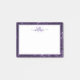 Customisable cursive name template and custom monogram initial letter on a white background. These cute, feminine post-it notes are bordered in a purple and white marble backdrop.