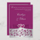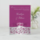 This romantic and elegant monogrammed dark magenta purple and silver grey floral wedding invitation has a PRINTED ribbon and bow with a pair of PRINTED diamond jewel and FAUX glitter (simulated) joined hearts on it, with an ornate scrolled border on the back. There is also a quotation that says: Love does not consist of gazing at each other, but looking outward in the same direction. ***PLEASE NOTE there are no raised elements on this invitation. Everything is printed flat. ***PLEASE NOTE that if you change the fonts or size of the fonts, it may alter how your invitation prints. It will print the way you see it on your monitor, so if you have alignment issues, or sizing problems, please contact me for help. I will not see your invitation once you order it, and Zazzle will NOT edit anything (typos, alignment, etc.). If you require assistance or would like any other matching items, please email your request to niteowlstudio@gmail.com.