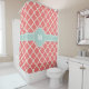 Monogram Quatrefoil Coral Mint Pattern Shower Curtain