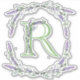 A romantic and elegant design with monogrammed letter framed by eucalyptus and lavender painted in watercolor.