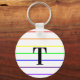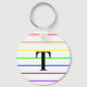 Fun summertime feel rainbow coloured geometric stripes in red, orange, yellow, green, blue, indigo, violet against white background. Personalise centre with monogrammed initial in black text. Original designs by TamiraZDesigns.