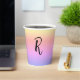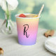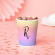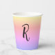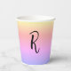 Every colour in the rainbow highlights these personalised single monogram paper party cups.
