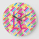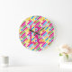 Monogram Rainbow Diagonal Lines Pattern Pop Art Large Clock