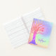 This pretty notebook is decorated with a tree and a background in rainbow colours and sparkling stars.