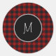 Monogram Red and Black Buffalo Plaid Classic Round Sticker
