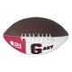 This is a full size football with one panel designed with a monogram name (large first letter) and uniform number, in popular college colours. This one is shown in red and black. The football is also available with two white panels so that a 2nd panel may include designs or room for signatures.