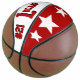 This is a full size basketball with two panels designed with a monogram name (large first letter) and uniform number, in popular college colours. This one is shown in Cardinal Red and White. The second panel has team colours with three stars. All text, art, and colours can be removed, or changed as desired. One panel can be left white for autographs, etc.