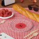 Monogrammed red and white striped pattern. Alternating red and white stripes.
