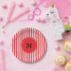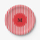 Monogram Red and White Stripes Pattern Paper Plate