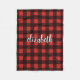Monogram Red Black Buffalo Plaid Custom Name Fleece Blanket