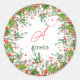 Monogram Red Christmas Greenery Classic Round St Sticker