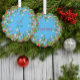 Monogram Red Christmas sky blue Classic Round Tree Decoration Card