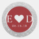 Monogram Red Elegant Silver Glitter Wedding Classic Round Sticker