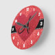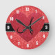 Monogram red glitter red heart round clock