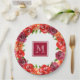 Floral pattern of red, orange and dark purple claret flowers and green leaves, these paper plates are ready to personalise with a monogram, initials, name, or saying. Great for a your party, housewarming gift or for your own home decor. MATCHING items in our store.