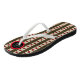A Monogramed Black, Cream And Red Rose Striped Womens Pair Of Flip Flop Shoes