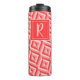 Monogram Red Three-Tone Diamond Pattern Thermal Tumbler