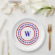 Monogram Red White and Blue Stars Patriotic Paper Plate
