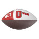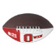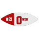 This is a full size football with one panel designed with a monogram name (large first letter) and uniform number, in popular college colours. This one is shown in scarlet red and white The football is also available with two white panels so that a 2nd panel may include designs or room for signatures.