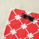 This custom made-to-order beach towel has features a geometric coral red and white tiled pattern with a personalised monogram at the base of the beach towel. Personalise by editing the text boxes provided.