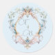 Monogram Regency Crest Blue Elegant Classic Round Sticker