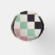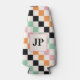 Monogram Retro Chequerboard Custom Monogrammed Can Coolers features a colourful chequerboard pattern in green, pink, orange, black and white with your personalised monogram. Personalise by editing the text in the text box provided. Perfect gift for golfers for birthday, Christmas and more. Designed by ©2024 Evco Studio www.zazzle.com/store/evcostudio