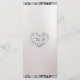 Heart monogram, ribbon & glitter embellish this wedding menu, the back also has a monogram placeholder. Available with different colours for your wedding theme. (Ribbon & glitter are simulated in the artwork). Designed to coordinate with the Romantic Hearts, Ribbon & Sparkle on Pearl Wedding Collection. To change details, click «Personalise». To move the text or change the text size, font, or colour click «Click to customise further»