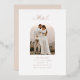 Announce your wedding in a romantic and refined way with this monogram photo invitation featuring a graceful arch design and soft blush pink back. Foil detailing adds a luminous touch, creating a meaningful keepsake for your guests!