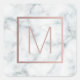 monogram rose gold and white on marble square sticker