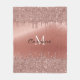 Metallic Rose Gold Dripping Glitter faux foil print on both the top and bottom, with a custom Monogram centered on this plush and cozy blanket