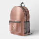 This elegant printed backpack features rose gold brushed metal background with sparkling Faux-Glitter borders. Add your name and initial for a personal touch. Perfect for being stylish on the go.
