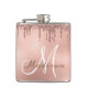 Monogram Rose Gold Glitter Drips Girly Hip Flask