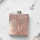 Monogram Rose Gold Glitter Drips Girly Sparkle Fla Hip Flask