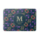 Monogram Rose Heart Pattern on Dark Blue Bath Mat