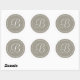 Stickers with a round aluminium silver grey monogram border with a white dot accent. Personalise with your monogram initial using the easy template. Font colour, font style, and font size are customisable.