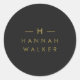 A simple, stylish custom monogram round sticker label featuring elegant gold minimalist typography on a sleek off black background. This refined design can be easily personalised with your initials, name, and optional feature line for a unique, one-of-a-kind look. Perfect as a wedding sticker, everyday gift seal, or elegant envelope seal, this versatile template adds a touch of sophistication to any occasion. Ideal for weddings, small businesses, stationery, or personal correspondence, this minimalist design combines timeless style with modern charm. A beautifully simple way to elevate packaging, favours, or invitations with effortless elegance.