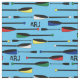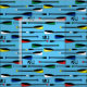 Customise this rowing fabric with your monogram or click the customise button to change the background colour. The print features oars in Olympic inspired colours on a blue (changeable) background.