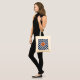 Monogrammed royal blue quatrefoil pattern with orange accent tote bag.
