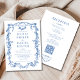 A sophisticated royal blue wedding invitation inspired by Victorian elegance and French romance. This all-in-one invitation showcases a refined monogram and integrated QR code, blending timeless beauty with modern functionality for your unforgettable celebration.