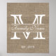 Monogram Rustic Burlap Family Name Poster
