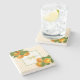 Monogram rustic citrus oranges watercolor stripes stone coaster