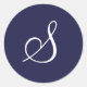 Monogram S, White on Navy Blue, Classic Round Sticker