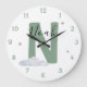 Monogram Sage Baby Initial Name Nursery Wall Clock
