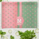 Monogram Sage Green and Coral Polka Dot Tea Towel