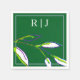 Monogram Sage Green Leaf Art Dusty Blue Wedding Napkin