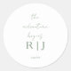 Monogram Sage Green Quote Adventure Begins Wedding Classic Round Sticker